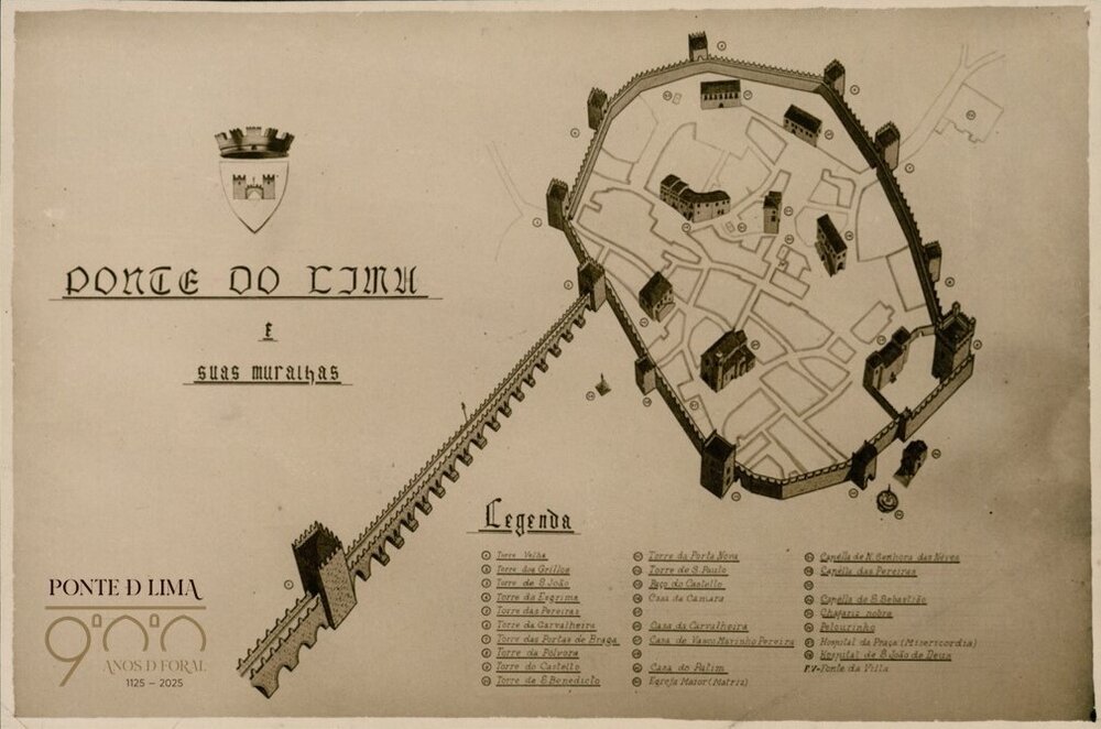 Ponte de Lima (1125 - 2025) A edificação da ponte gótica e da estrutura muralhada, com as suas torres e portas, ... -